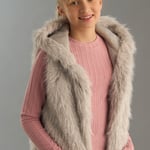 Girls Faux Fur Sleeveless Hooded Jacket