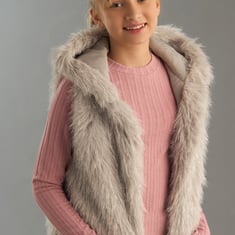 Elevate your daughter's outerwear collection with this hooded jacket. With a faux fur texture, this sleeveless jacket is perfect for layering over any outfit and boasts a comfortable hood for added warmth.