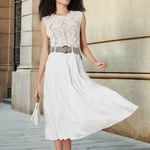 This solid A-line belted flared skirt features a flattering midi-length silhouette that's both stylish and versatile. The belted waist adds a tailored touch, while the flared design creates movement, making it perfect for both casual and semi-formal occasions.