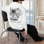 Elevate your winter wardrobe with this stylish sweatshirt. Designed with a bold graphic print on the back and a placement print on the front, it features a cosy hooded neck, full sleeves, and a practical kangaroo pocket. The modern design ensures both warmth and style, making it a perfect casual addition for chilly days.