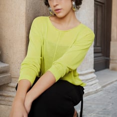 Upgrade your cosy collection with this top. The loose-knit construction gives a breathable look and adds a textural element. It has a round neck, drop shoulders, full sleeves, and ribbed trim.
