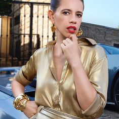 • Style Note : Pair this shimmering shirt with tailored trousers or a sleek pencil skirt for a polished look.