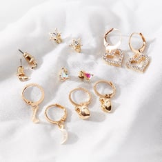 Sparkle and shine with this pack of earrings. It features 3 pairs of drop earrings and 3 pairs of stud earrings. These earrings are secured with a post and back or spring clasp. The stone embellishment adds to the style.