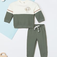 Keep it coordinated and comfortable with this colourblock joggers set, perfect for laid-back days or casual outings. The t-shirt features a classic crew neck and full sleeves, while the matching joggers come with a drawstring closure and functional pockets for added convenience.