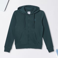 Stay cosy and casual with this knit hooded sweatshirt, featuring a zip closure, full sleeves, and convenient kangaroo pockets. Soft and comfortable, it’s perfect for everyday wear and layering.