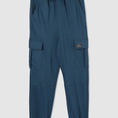 Keep him comfortable and stylish in these joggers. Featuring a solid surface, they come equipped with a drawstring waist, side pockets, cargo pockets, a back pocket, and a cuffed hem.
