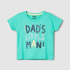 Elevate your boy's style with this typographic printed T-shirt featuring a crew neckline, half sleeves, and a straight hemline. The trendy design adds a playful touch to his outfit, making it a versatile and stylish choice for any casual occasion.