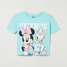 This charming t-shirt showcases a Disney theme print, half sleeves, and a round neckline.
