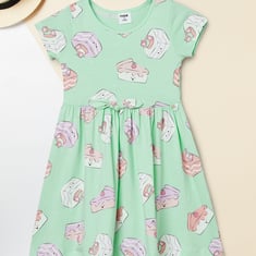 Kindle her spirit with this charming A‑line dress featuring a round neck, half sleeves, and a gathered waist. The playful prints add a lively touch, making it a delightful choice for play dates or short vacations.