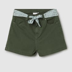 Stay cool and stylish with these solid belted shorts, featuring 5 pockets for practical storage. The belt loops and button closure ensure a secure and comfortable fit, making them perfect for casual outings or relaxed days.