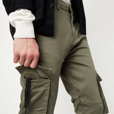 Refresh your street style with this pair of jeans. It has a belt loop waist, side pockets, rear welt pockets, side cargo pockets, and a carrot-fit profile. For a dapper look, Style this pair with a tee and sneakers.