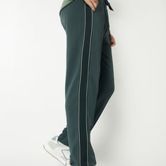 These side-tape athleisure track pants bring sporty style to everyday comfort. Designed with an elasticated waist, side pockets, and full-length silhouette, they offer a relaxed fit with a modern edge.