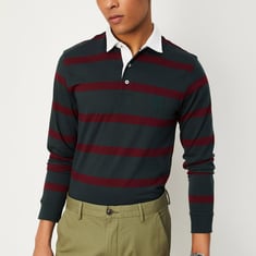 Men Striped Full Sleeve Polo T-shirt