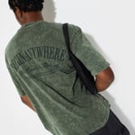 Step up your fashion game with this acid-washed T-shirt, a wardrobe staple for men. Featuring short sleeves, a crew neck, and a typographic print on the back, its oversized profile ensures roomy comfort and effortless style.