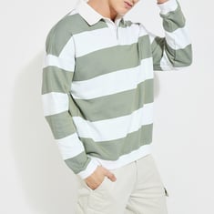 URB_N Men Oversized Striped Polo Sweatshirt