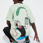 Look cool and relaxed in this T-shirt. It is highlighted with Popeye-themed print at the front and back. This oversized tee is styled with a crew neck, short sleeves, and a straight hem.