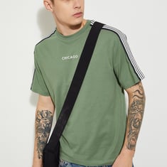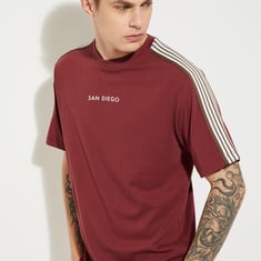 This T-shirt offers a stylish and casual look. Featuring a solid design, it adds a trendy touch to your wardrobe. The crew neck and half sleeves provide a comfortable fit. Detailed with striped shoulder accents for a unique appeal.