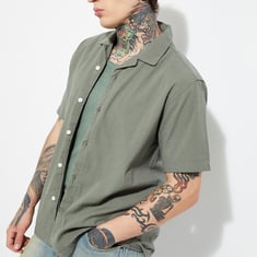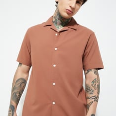 Step up your casual style with this textured regular fit shirt. Featuring a resort collar, button placket, and half sleeves, it offers a relaxed yet refined look perfect for warm-weather days.