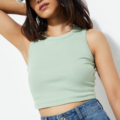Achieve an effortlessly chic look with this tank top. The ribbed surface adds a stylish touch, while the round neck and sleeveless design offer a sleek and comfortable fit.