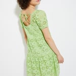 Channel boho vibes with this enchanting dress featuring schiffli embroidery, an A-line silhouette, a square neck, half sleeves, a tie-up back and a tiered profile.
