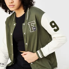 Women Baseball Collar Varsity Jacket