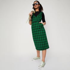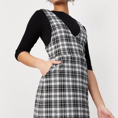 Women Checked Pinafore Dress with Top