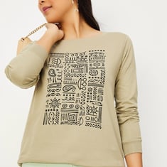 Add some style to your everyday wardrobe with this trendy t-shirt. Featuring a graphic print on the front, it also has a classic round neck, full sleeves, and ribbed hem. Pair it with jeans and sneakers to create a standout look.