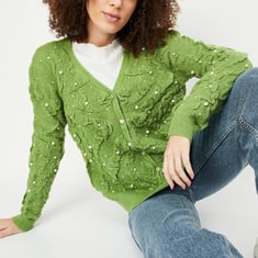 Women Pearl Embellished Cardigan