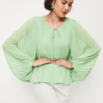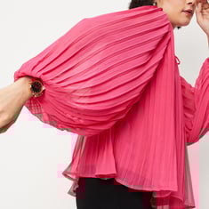 Add a hint of drama to your look with this top. It has a pleated design, a tie-up neck, and balloon sleeves. Pair this top with trousers and heel sandals to ace the look.