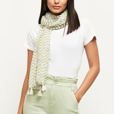 Chevron and floral prints accentuate the elegance of this scarf that features tasseled border goes well with almost everything in your wardrobe.