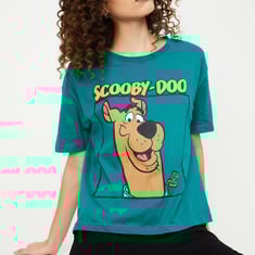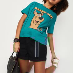 Add this Scooby-Doo printed T-shirt with a round neck and half sleeves to your casual wardrobe for a chic look.