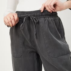 Slay your casual style with this pair of trousers. This ankle-length profile has patch pockets and a drawstring waist.
