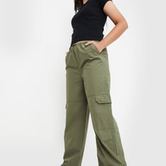Women Solid Cargo Parachute Trousers