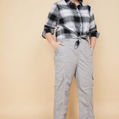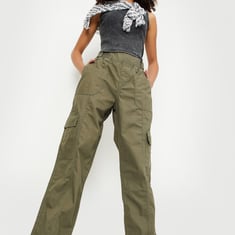 Elevate your casual wardrobe with these solid cargo trousers. Featuring an elasticated waist, belt loops, and multiple pockets, they offer both comfort and practicality for all-day wear. Model Size :