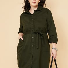 Women Solid Shirt Dress