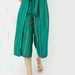 Liven up your casual styling with this pair of culottes. It features a striped pattern, a partially elasticated waist with a fabric tie-up, side pockets, mock overlap at the front, and a wide leg profile. Style this pair with a crop top and wedges for a chic look.