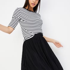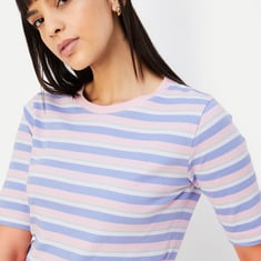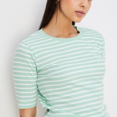 A perfect addition to your casual wardrobe, this T-shirt is updated with a striped pattern. It is designed with a round neckline and half sleeves.