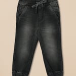 Refresh your kid’s wardrobe with this pair of denim joggers, designed with a trendy washed surface. Featuring an elasticated waistband and pockets for practicality, and a drawstring closure for a secure, adjustable fit, these joggers are a versatile and stylish choice for everyday wear.