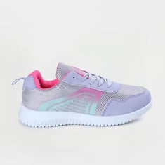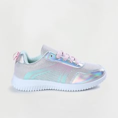 A perfect mix of sporty and glam, this pair of shoes is updated with iridescent panels, round toe, printed sides, and a lace-up panel. This pair features a back heel tab, padded collar and tongue, cushioned footbed, and durable outsole.