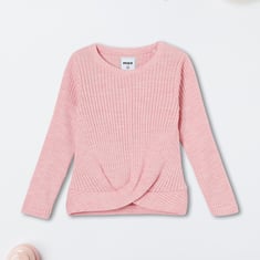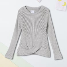 Set your kid up for winter with this cosy sweater. Featuring a round neck and full sleeves, it’s designed with a ribbed surface for a snug and comfortable fit. The twisted front detail adds a trendy touch, making it both stylish and functional.