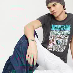 A perfect addition to your everyday rotation, this ultra-slim fit T-shirt is highlighted with Justice League-themed graphic prints. It is styled with a crew neck and short sleeves. Ace the casual looks by styling this tee with jeans and sneakers.