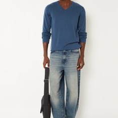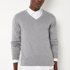 Stay warm in style with this knit sweater, featuring a classic V-neck, full sleeves, and a ribbed hem for a snug fit. Perfect for layering on cooler days with a touch of refined texture.