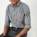 Upgrade your wardrobe with this solid shirt. It has a spread collar, full sleeves, buttoned cuffs, a curved hemline, and a button-down front. Its monochromatic design effortlessly suits formal occasions.