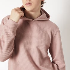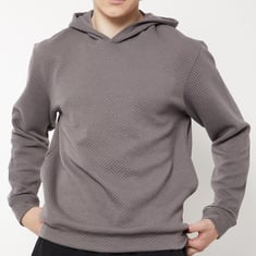 Stay warm and stylish with this textured hooded sweatshirt, featuring full sleeves, a ribbed hem, and a convenient side pocket. Designed for comfort with a modern touch.