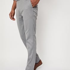 Dress to the nines in this pair of trousers rendered in a solid tone and tailored in a carrot-fit profile. It is designed with a flat front, belt loop waist, side pockets, back buttoned welt pockets, and a full-length profile. Style this pair of trousers with a shirt and lace-ups.