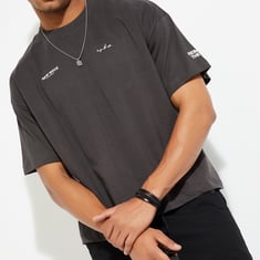 Step up your fashion game with this acid-washed T-shirt, a wardrobe staple for men. Featuring half sleeves, a crew neck, and typographic prints, its oversized profile ensures roomy comfort and effortless style.