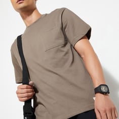 Elevate your urban wardrobe with this solid-finish T-shirt. Featuring a classic crew neck, short sleeves, a patch pocket, and an oversized profile, it adds a touch of urban edge to your casual style.
