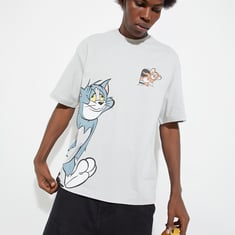 Add a fun twist to your casual wardrobe with this T-shirt. It is styled with a Tom and Jerry graphic print, a crew neck, and short sleeves.