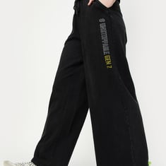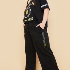 A blend of athletic performance and fashion-forward design, this pair of track pants is updated with a print on the side. It features a drawstring waist and side pockets. The wide leg profile offers roomy comfort.