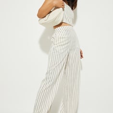 Slay your look with this pair of trousers. The striped pattern lends a classic look. It features a partially elasticated waist and side pockets. The wide-leg profile offers a breezy style.
